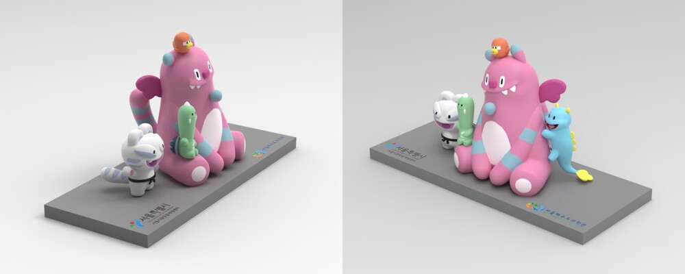서울을 대표하는 마스코트 해치와 소울프렌즈를 실제 공간에서 만날 수 있도록, 이번 서울하수도과학관 포토존은 입체적인 FRP 조형물로 새롭게 구성되었습니다.다섯 캐릭터가 하나의 장면처럼 어우러질 수 있도록 기단 위 배치와 자세를 중심으로 다양한 구도 검토가 이루어졌습니다. 특히 아이들이 자연스럽게 다가와 머물고 사진을 촬영할 수 있도록 높이와 간격, 동선을 고려한 설계에 중점을 두었습니다.