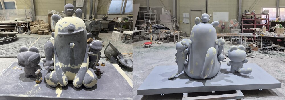 이번 제작에서는 메인 해치 조형물에 대해 기존에 보유하고 있던 다회용 FRP 몰드를 활용해, 제작 속도와 완성도를 모두 안정적으로 확보할 수 있었습니다. 기관 마스코트처럼 장기간 운영과 관리가 필요한 조형물의 경우, 동일한 형태를 반복 제작할 수 있다는 점이 큰 강점으로 작용합니다. 고밀도 스티로폼 원형 조각과 정밀한 표면 정리를 거쳐, 다섯 캐릭터가 하나의 장면처럼 자연스럽게 어우러지는 FRP 마스코트 포토존으로 완성했습니다.