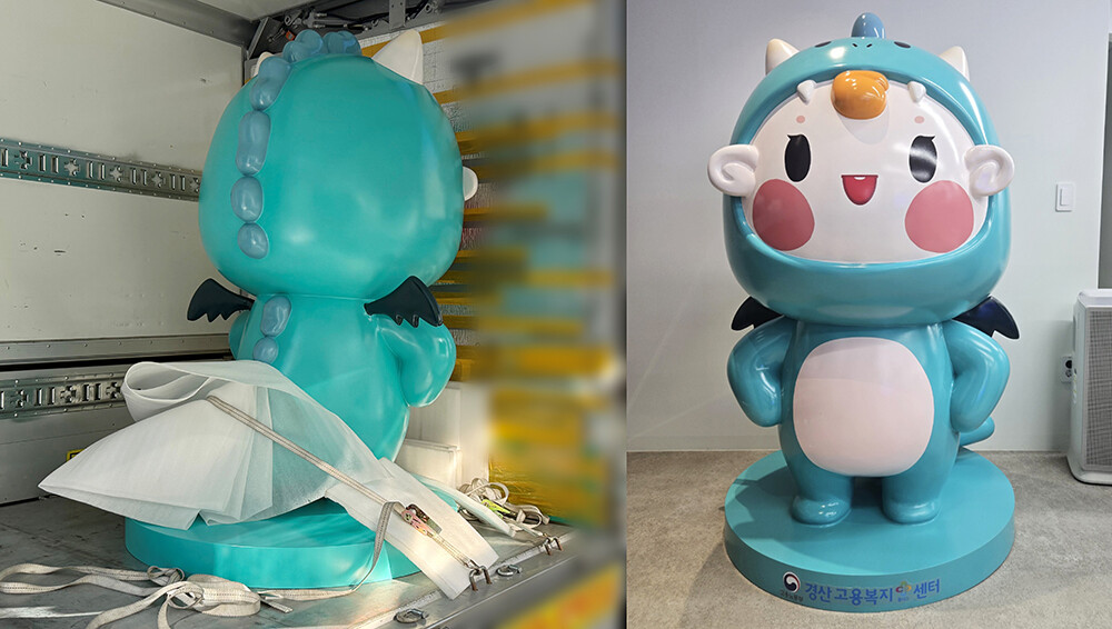 대형 고드래곤 포토존 조형물은 출하 전 단계에서 지정된 팬톤 컬러와의 부합성 및 구조적 결함 여부를 다각도로 점검하는 전수 검사를 거쳤습니다. FRP 캐릭터 포토존 운반 과정에서 발생할 수 있는 물리적 타격을 방지하고자 고탄성 발포제를 덧대었으며, 고정 벨트로 인한 눌림 자국까지 예방하는 보양 조치를 완료했습니다. 이동 중 진동이나 타 적재물과의 마찰을 원천적으로 차단하고자 전용 독차 포스트를 배정하여 FRP 대형 포토존 경산고용복지센터까지 안정적으로 운송했습니다. 현장에 도착한 고드래곤은 최적의 위치에 안착되었으며, 지면과의 수평 상태 및 기단 고정력을 엄격히 테스트했습니다. 기관의 명칭이 새겨진 기단 위로 듬직하게 선 고드래곤 캐릭터 조형물은 공공기관 특유의 경직된 공간을 한층 생기 있고 환대받는 분위기로 변모시켰습니다. 철저한 사전 예방 조치와 현장 대응을 통해 고드래곤 캐릭터 FRP 조형물을 최상의 상태로 전달하며, 공공기관의 신뢰도를 높이는 시각적 랜드마크로서의 납품을 성공적으로 마무리했습니다.