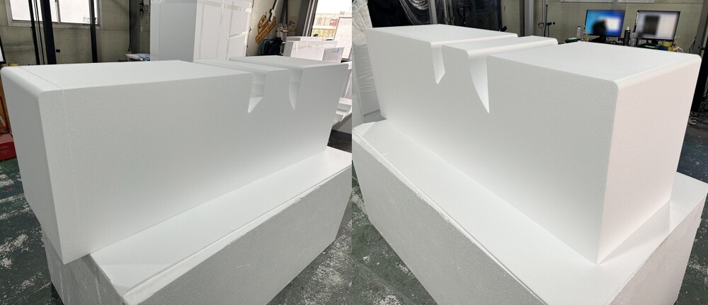 디자인이 확정된 이후에는 스티로폼 글자 제작을 위한 원자재 재단 작업이 진행되었습니다. 대형 스티로폼 글자 조형물은 형태 정확도가 중요하기 때문에 장비를 활용해 스티로폼 글자 윤곽을 정밀하게 절단하는 과정이 필요합니다. 컴퓨터 데이터를 기반으로 재단을 진행하면 곡선이나 내부 구조까지 스티로폼 글자 형태를 일정하게 표현할 수 있습니다. 재단 과정에서는 스티로폼 글자 외곽뿐 아니라 글자 두께와 구조 안정성을 고려한 내부 라인까지 함께 작업됩니다. 글자 하나하나가 스티로폼 글자 조형물 형태로 완성될 수 있도록 조각을 정리하고 조립 구조를 확인하며 제작을 이어갑니다. 이 과정을 통해 무대 위에 설치될 스티로폼 글자 형태가 기본 구조로 완성됩니다.