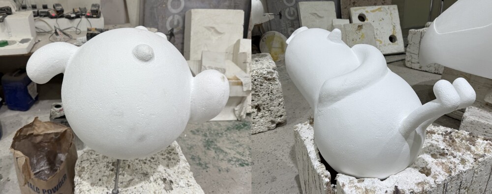 디자인이 확정된 이후에는 캐릭터 형태를 실제 입체로 구현하기 위한 원형 제작 단계가 진행됩니다. 원형 조각은 조형물의 형태와 비례를 결정하는 핵심 공정으로, 캐릭터 특유의 둥근 실루엣을 자연스럽게 표현하는 데 집중합니다. 표면의 곡선이 부드럽게 이어지도록 반복적인 수정 작업을 거치며 완성도를 높입니다. 또한 실제 제작 단계에서 안정적인 구조가 될 수 있도록 내부 균형과 두께도 함께 고려합니다.