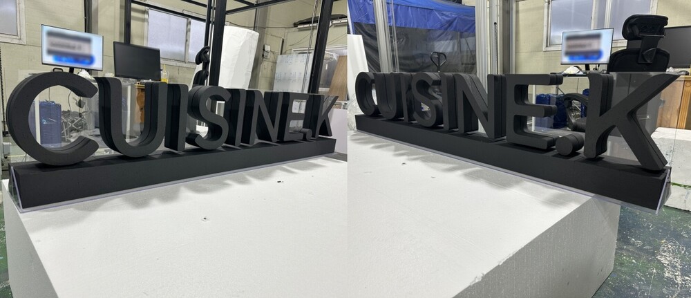 이번 제작은 ‘CUISINE.K’ 로고를 기반으로 한 글자 조형물 제작 프로젝트로, 공간에서 브랜드 이미지를 효과적으로 전달할 수 있도록 디자인 시안 단계부터 세밀하게 계획되었습니다. 특히 행사장이나 전시 공간에서 시각적인 존재감을 높이기 위해 입체감이 강조되는 스카시 조형물 형태로 설계되었습니다. 글자 간 간격과 두께, 전체 길이의 비례를 반복적으로 검토하며 완성도 높은 스티로폼 조형물 제작을 위한 기초 설계를 진행했습니다. 이 과정은 실제 제작 전 형태의 안정성과 시각적 균형을 확인하기 위한 중요한 단계이며, 최종 결과물의 완성도를 좌우합니다. 최종적으로 브랜드 로고의 특징을 유지하면서도 공간 연출에 잘 어울리는 글자 조형물 형태의 스카시 조형물 디자인이 확정되었습니다.