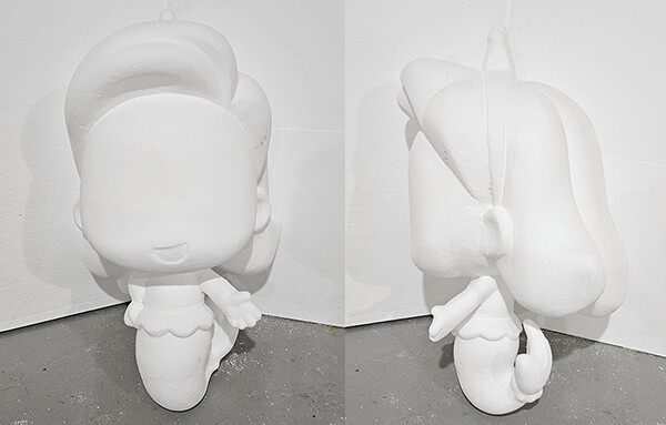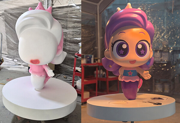 퍼플스타 캐릭터의 입체적인 실루엣을 빚어내는 원형 조각 단계에 착수했습니다. 실내 전시물의 정교함을 살리기 위해 가공성이 뛰어난 스티로폼을 주재료로 선택했으며, 캐릭터 특유의 둥근 볼륨감을 섬세하게 다듬었습니다. 캐릭터 FRP의 기초가 되는 이 공정에서는 조형물 주문제작의 마감 수준을 극대화하기 위해 표면의 미세한 굴곡까지 매끄럽게 정리하는 작업에 집중했습니다. 행사장 조형물은 방문객이 직접 만져볼 수 있는 거리에서 전시되기에, 꼬리의 비늘 패턴과 머리카락의 웨이브 라인을 원형 단계에서부터 완벽하게 구현했습니다. 완성된 원형은 행사장의 분위기를 압도하는 생동감을 머금게 되며, 이는 추후 FRP 성형 공정에서 최상의 결과물을 도출하는 기준점이 됩니다. 정교하게 조각된 원형을 통해 우리는 조형물 주문제작 서비스가 가지게 될 예술적 가치를 미리 확인할 수 있습니다.