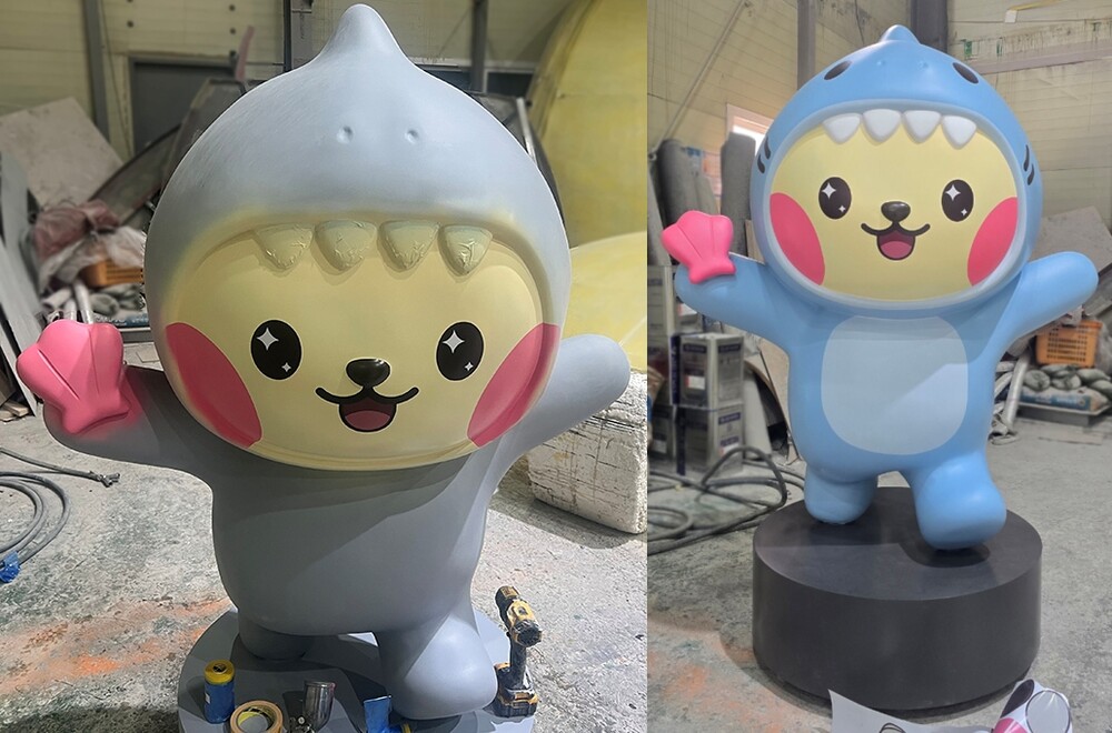 성공적인 캐릭터 런칭을 위한 조형물 디자인의 첫 단추는 2D의 평면적인 비주얼을 입체물로 치환하는 정밀 설계에 있습니다. 이번 프로젝트는 수협의 신규 캐릭터인 해해를 주인공으로 하여, 전달받은 데이터를 기반으로 행사 현장에 최적화된 1,200mm 규격의 전시 조형물 설계를 진행했습니다. 얼굴의 좌우 대칭과 이목구비의 미세한 위치 선정에 극도로 예민하게 접근하여 캐릭터 FRP 본연의 귀여움을 극대화했습니다. 특히 이번 FRP 제작물은 무대 위 안정적인 자립이 필수적이었기에, 하단에 기단을 일체화하여 시각적 몰입감을 높였습니다. 내부에는 고강도 철골 보강재를 배치하여 많은 인파가 몰리는 FRP 포토존 환경에서도 구조적 변형이 없도록 치밀하게 계산했습니다. 이러한 체계적인 조형물 기획은 단순한 형상화를 넘어 브랜드의 신뢰도를 높이는 중요한 기초 공정이 됩니다. 저희는 클라이언트와 실시간으로 소통하며 미세한 표정의 곡률까지 조정한 끝에, 완벽한 조형물 디자인 시안을 확정하고 본격적인 제작의 닻을 올렸습니다.