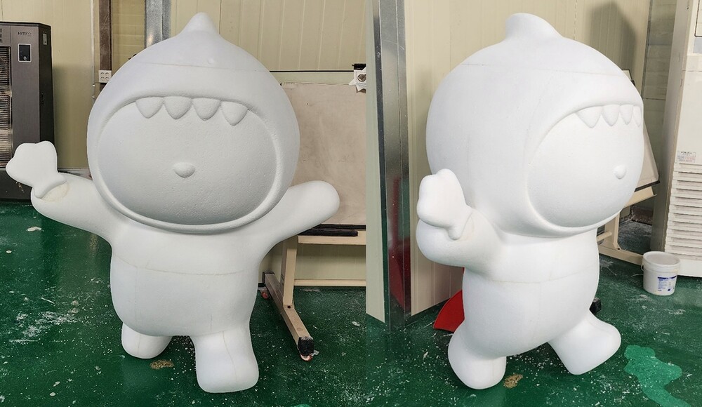확정된 조형물 디자인을 바탕으로 해해의 실물 형태를 구현하는 원형 조각 단계는 조형물의 인상을 결정짓는 가장 핵심적인 과정입니다. 스티로폼 블록을 1차 재단한 후, 캐릭터 특유의 유연하고 둥글둥글한 실루엣을 정교하게 다듬었습니다. 전시 조형물은 관람객의 시선이 집중되는 만큼, 어느 각도에서 보아도 완벽한 비례감을 유지하도록 샌딩 페이퍼를 이용해 표면을 매끄럽게 정리했습니다. 캐릭터 FRP의 생명력은 이 기초 조각에서 결정되기에, 맑고 밝은 미소의 입체적 볼륨을 세밀하게 조율했습니다. 행사의 주인공이 될 해해의 앙증맞은 지느러미와 꼬리 끝단까지 정교하게 빚어낸 원형은 FRP 성형 시 최상의 퀄리티를 보장하는 밑거름이 됩니다. 기포나 결함 없는 완벽한 원형은 향후 FRP 포토존으로서 대중에게 사랑받을 조형물의 기틀을 마련하며 예술적 감각을 더한 가공 공정으로 이어집니다.