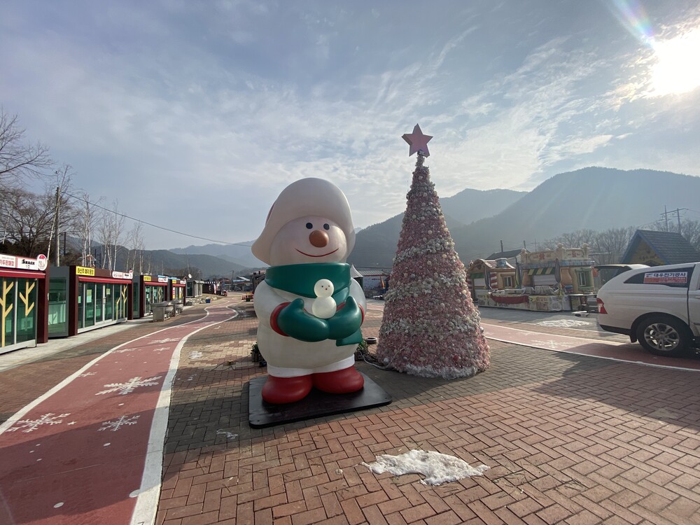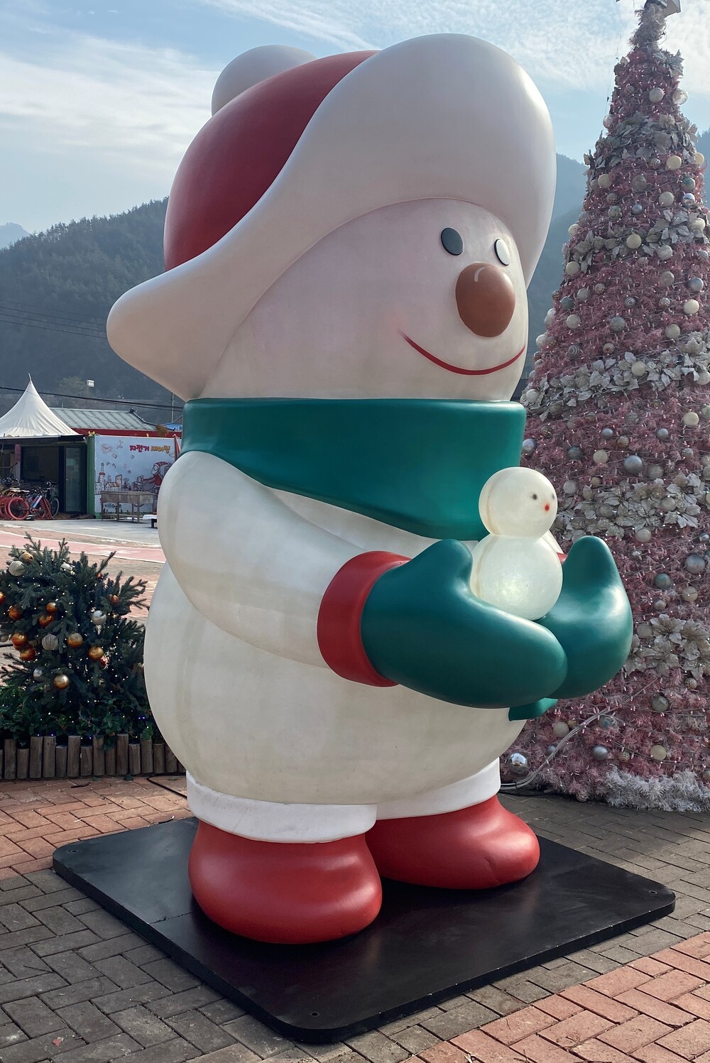 봉화 분천 산타마을 거대 눈사람 캐릭터 FRP 조명 포토존 조형물