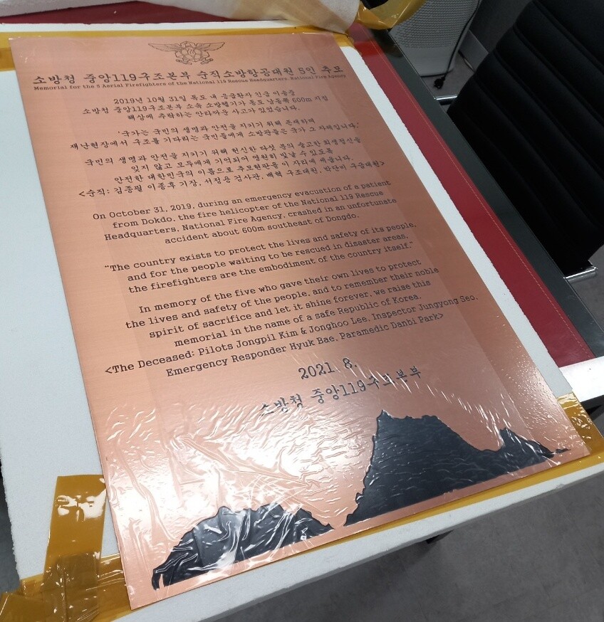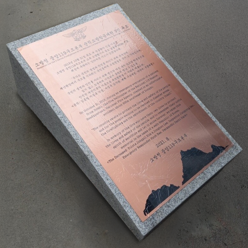 독도 순직 소방대원 추모비 석재 동판 조형물
