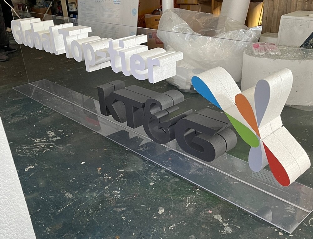 KT&G 영문 기호 혼합 스탠딩 스티로폼 스카시 조형물