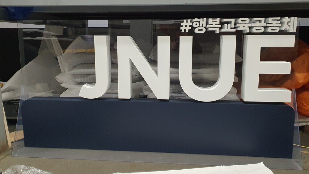 JNUE 로고 레터링 고무스카시 글자 실내 행사 조형물