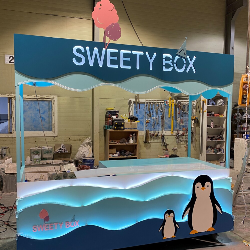 롯데월드타워 아쿠아리움 조명형 실내 금속 펭귄 솜사탕 매대 조형물