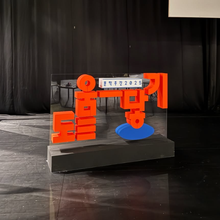 한국문화예술위원회에서 주최한 ‘문학주간 2025 도움닿기’ 로고를 대학로예술극장 무대 연출 소품으로 제작했습니다.