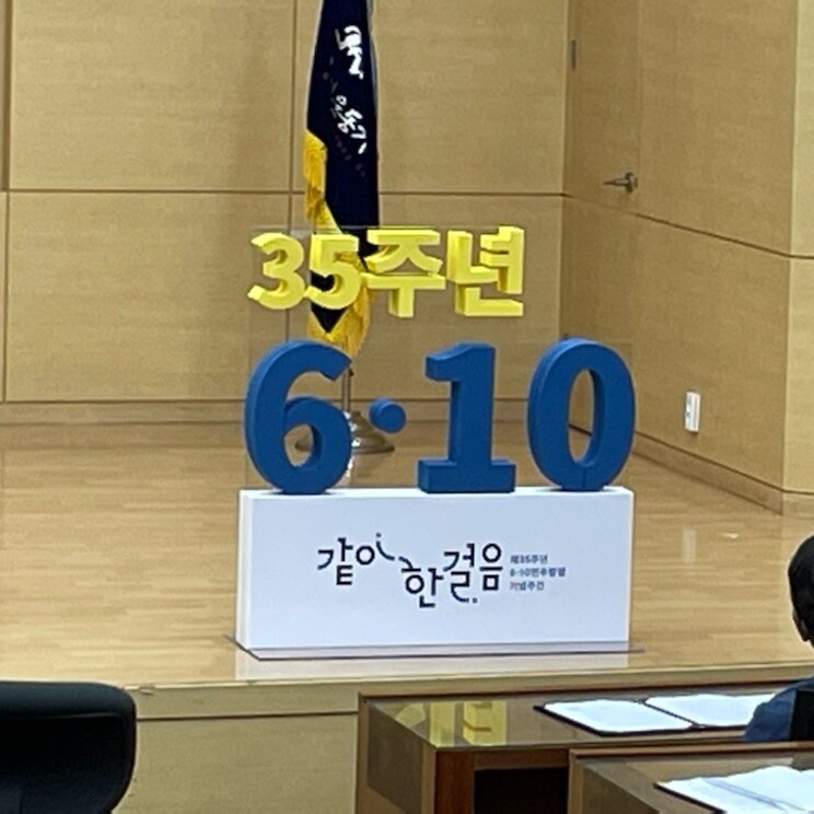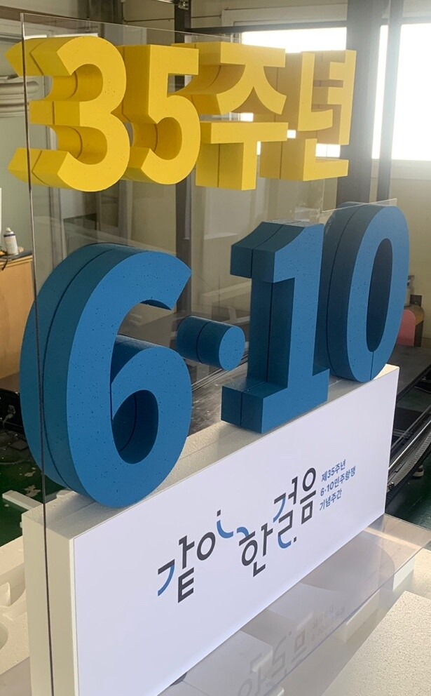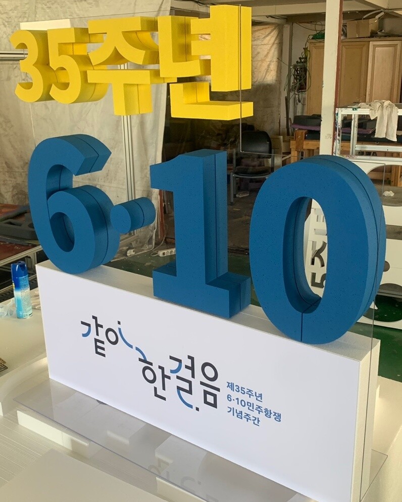 민주화운동기념사업회 무대 행사 홍보용 스탠딩 스티로폼 슬로건 글자 조형물