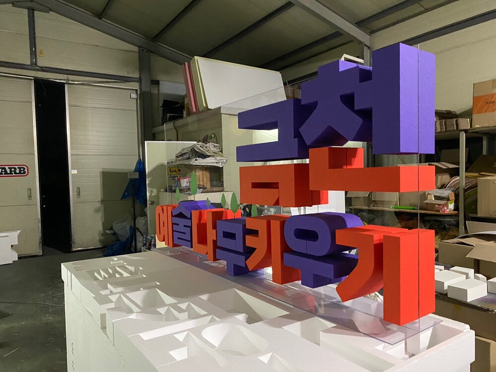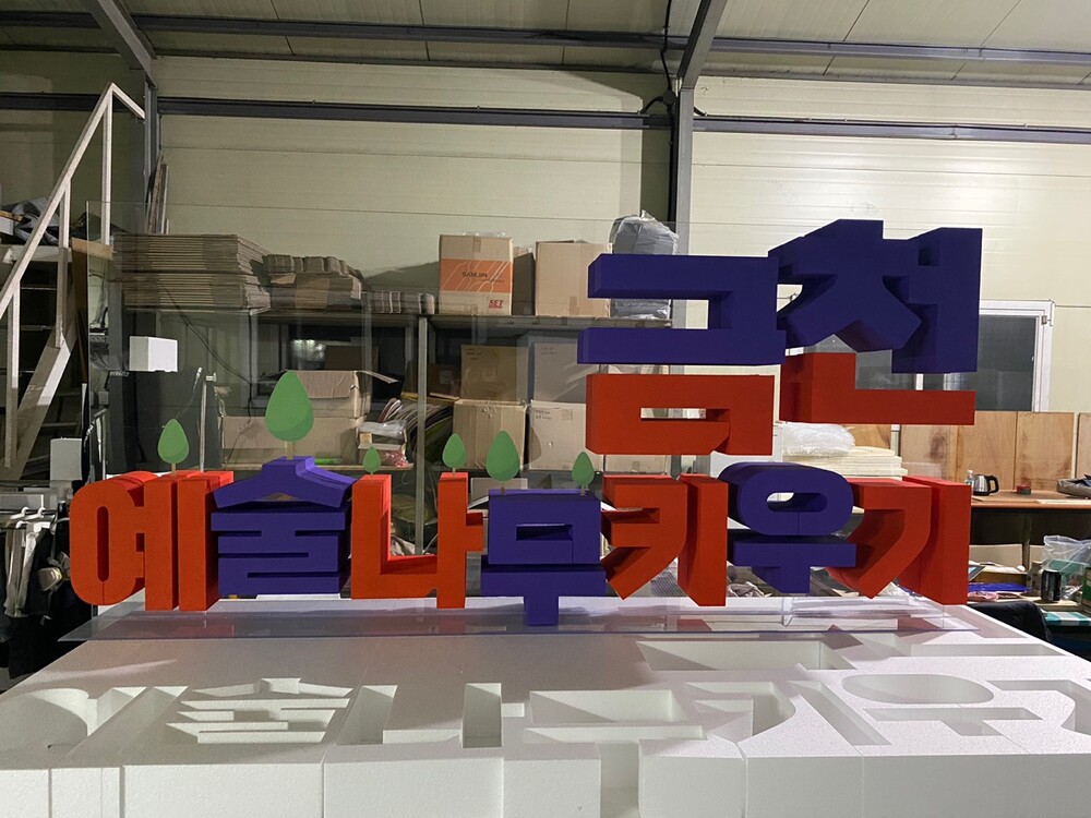 금천예술나무키우기 캠패인 홍보 배색 글씨 조형물