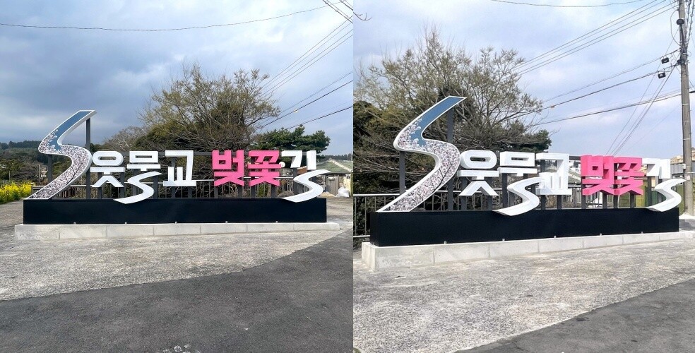 조명형 웃물교 벚꽃길 글자 입구 안내 금속 조형물