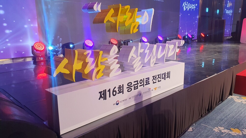 행사 응급의료전진대회 스티로폼 무대 글자 조형물