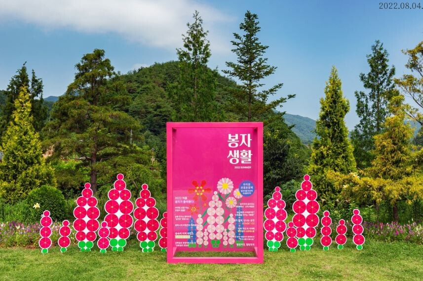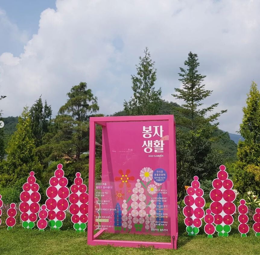 봉자꽃축제 행사 잡지형 설치 금속 포토부스 조형물 대여